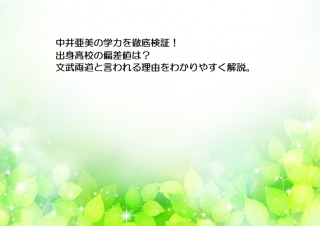 そんな中井亜美選手について、最近よ注目されているのが「学力」や「出身高校」「偏差値」です。